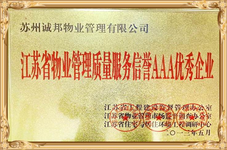 江蘇省管理質(zhì)量服務(wù)信譽(yù)AAA優(yōu)秀企業(yè)